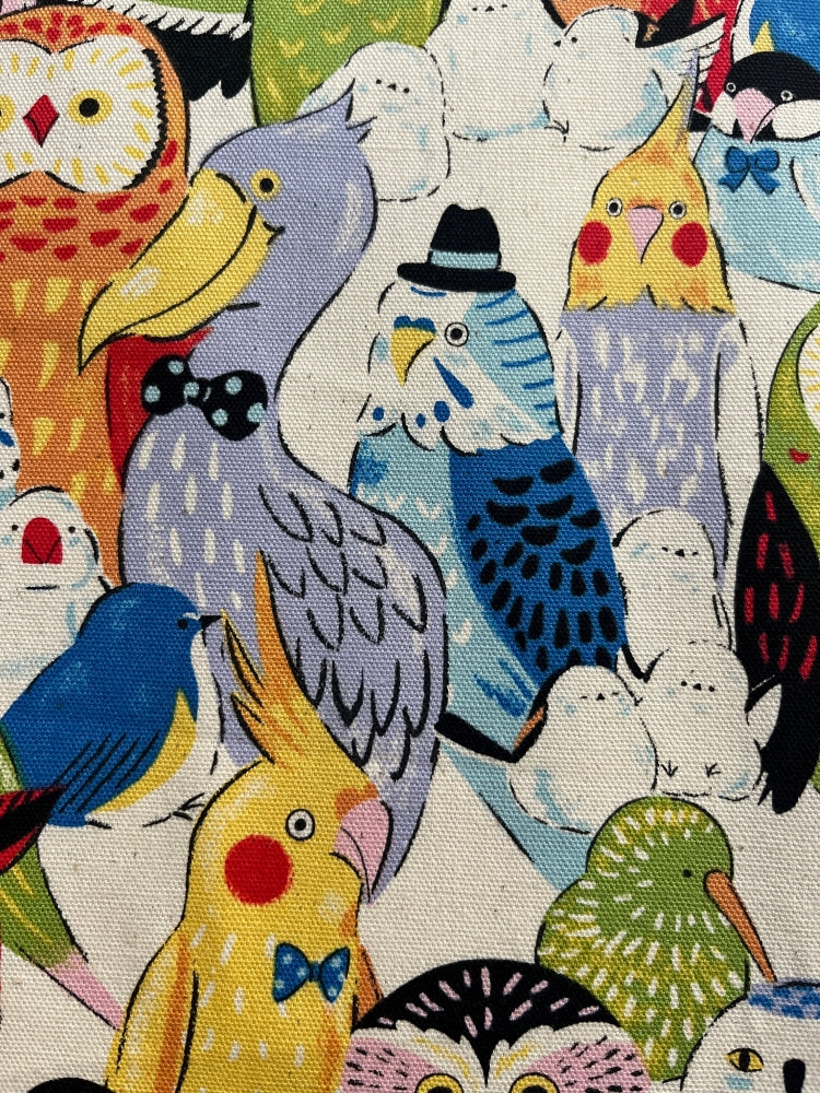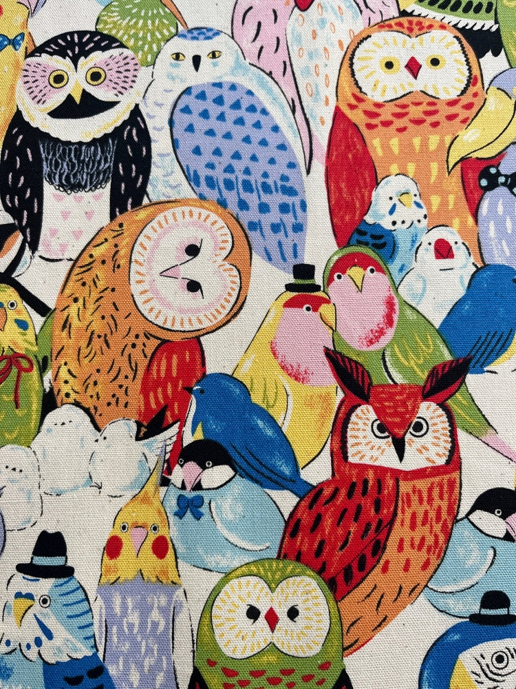 Dieser wunderschöne feste Baumwollstoff ist ein leichter Canvas, bedruckt mit verschiedenen verrückten, bunten Vögeln. Perfekt geeignet für Taschen und Accessoires, aber auch für Kissen, Vorhänge, Tischdecken oder Schürzen.