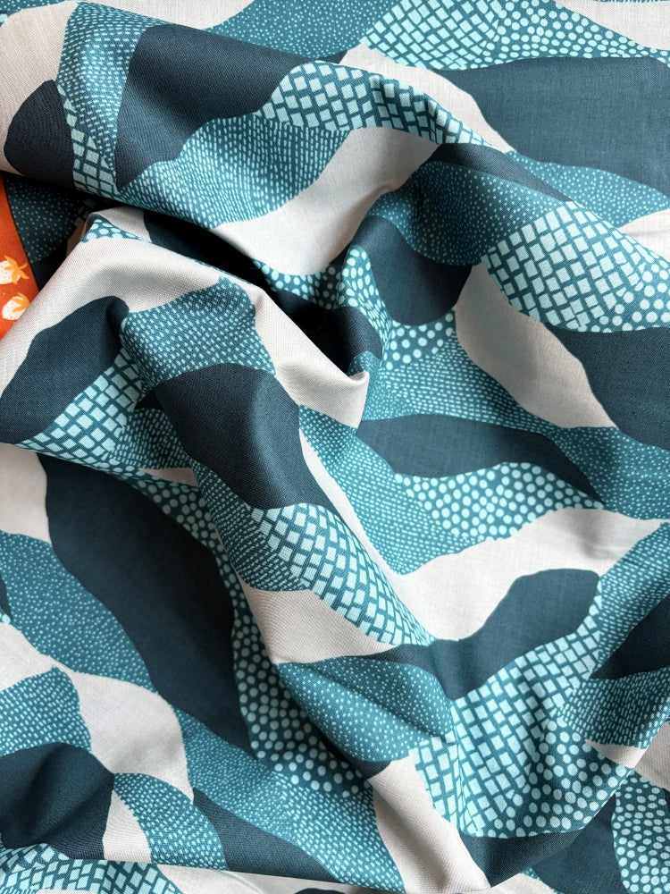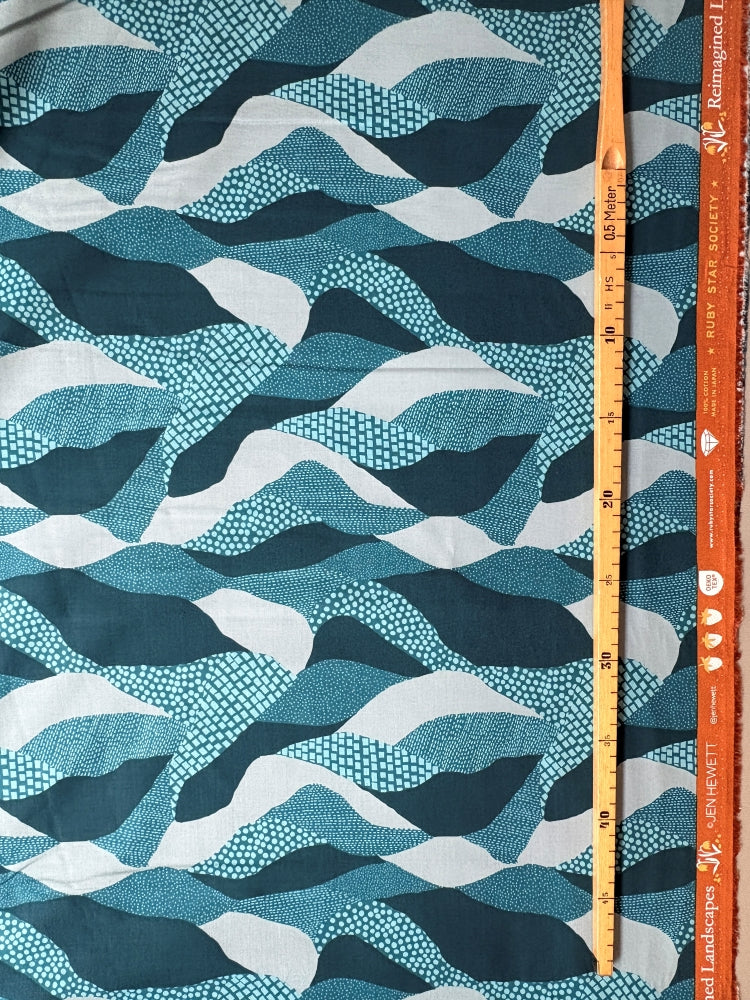 Eine wunderschöne Hügellandschaft als Druck. Dieser leichte, glatte Baumwollstoff ist perfekt geeignet für Patchwork, Kissen, Täschchen, aber auch Kleidung wie Blusen und Kleider. Aus der Ruby Star Collection von Jen Hewett.
