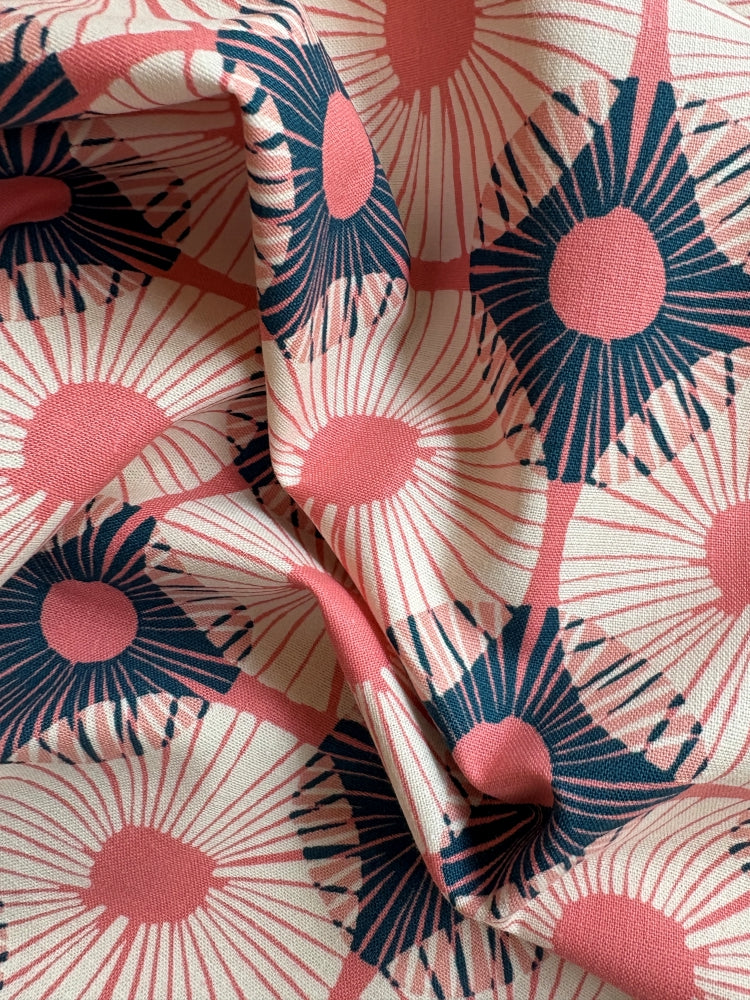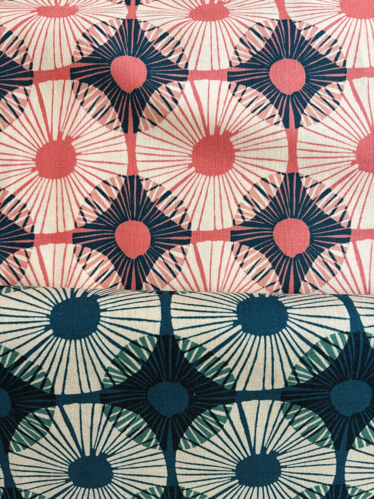 Ein wunderschöner grafischer Pusteblumendruck. Dieser feste Baumwollstoff ist perfekt geeignet für Patchwork, Kissen, Täschchen, aber auch Kleidung wie Blusen und Kleider oder Jacken und leichte Hosen. Aus der Ruby Star Collection von Jen Hewett.