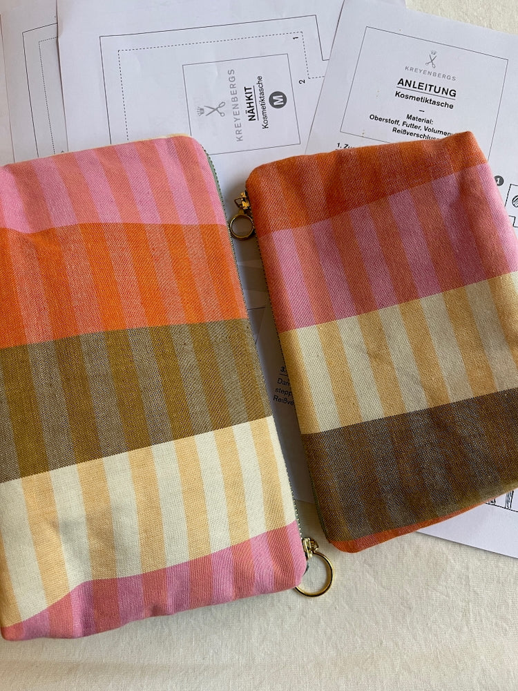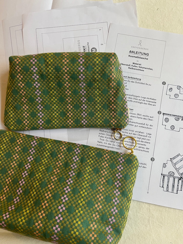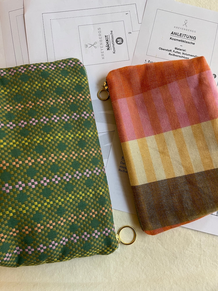 Das Nähkit enthält das Material für zwei Kosmetiktaschen der Größe M und L. Für mutige Nähanfänger*innen geeignet!
