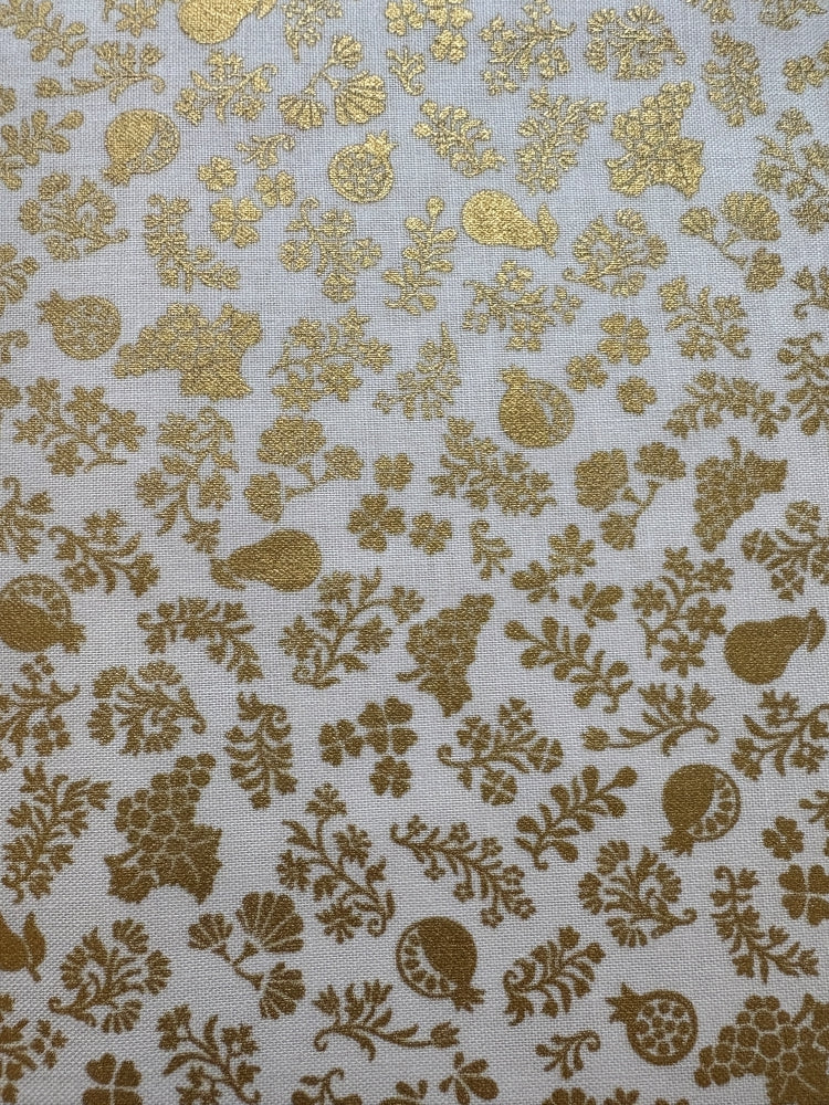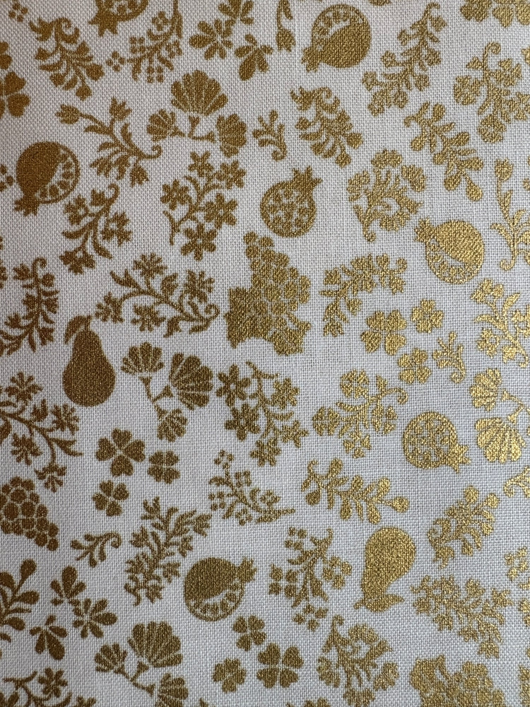 Wunderschöner Gold-Druck, glänzend fürs Fest! Hervorragend geeignet für festliche Kleidung oder Accessoires. Aber auch schöne Dinge für Haus & Hof wie Tischdecken oder Kissen.
