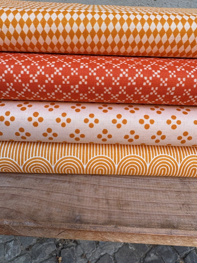 Wunderschöner Baumwollstoff bedruckt mit Rauten. Ein leichter, glatter Baumwollstoff, perfekt geeignet für Patchwork, Kissen, Täschchen, aber auch Kleidung wie Blusen und Kleider.