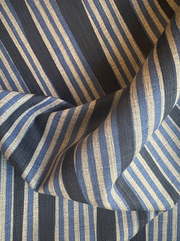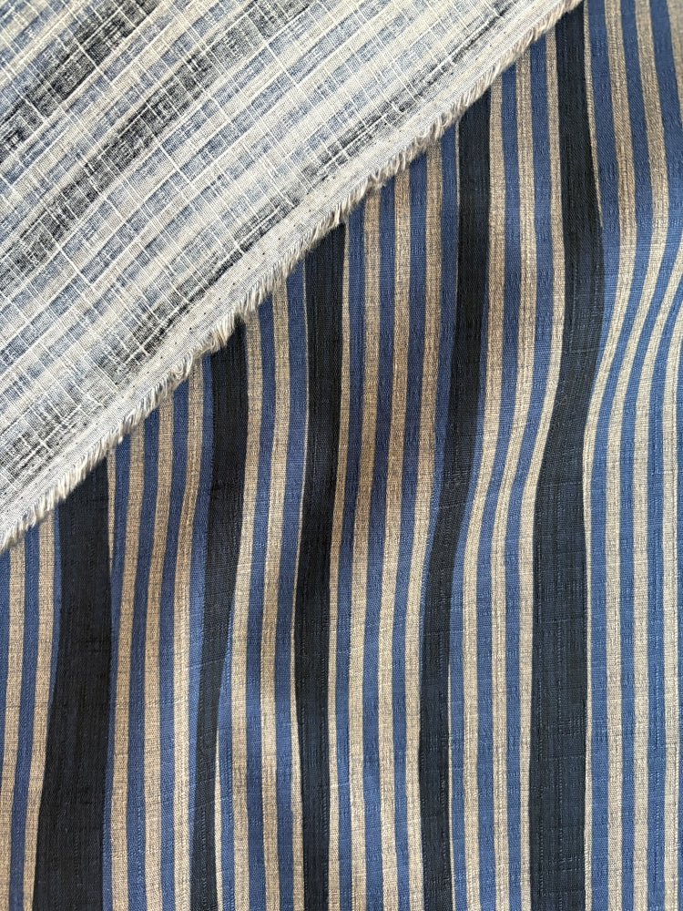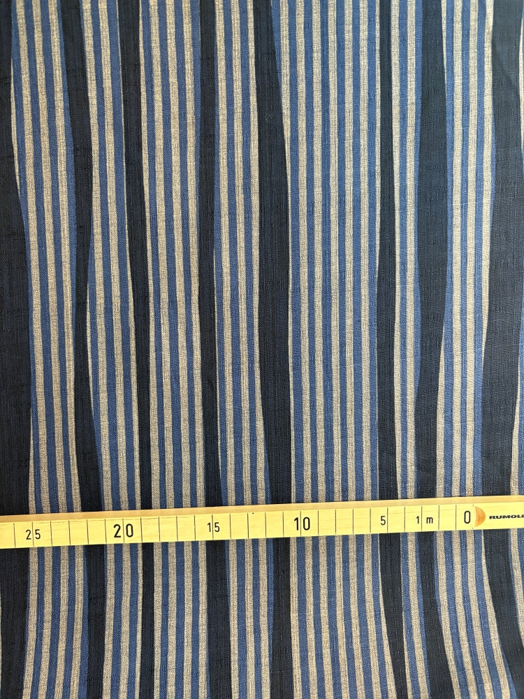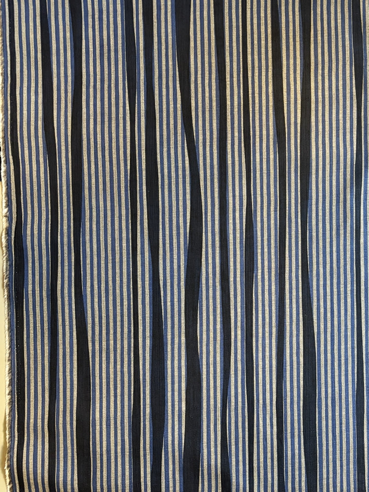 Dieser mittelfeste Baumwollstoff hat eine gewebte Leinen-artige Struktur und ist mit unregelmäßigen Linien bedruckt, perfekt geeignet für Blusen, Hemden Kimonos und andere Kleidungsstücke, aber auch für Taschen, Kissen und andere schöne Dinge für zu Hause.