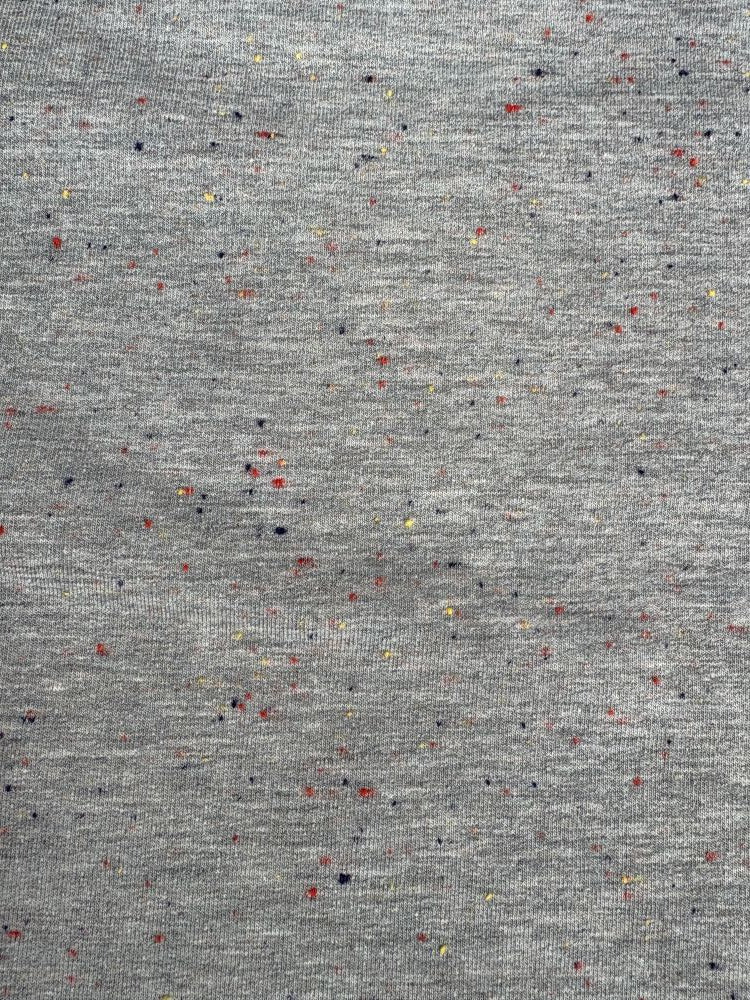 Dieser leichte weiche Baumwoll-Sweat hat eine melierte Oberfläche mit bunten Sprenkeln und einer weichen, aufgerauten Rückseite. Ein kuscheliges Material für gemütliche und bequeme Kleidung wie Sweatshirts, Hoodies, Jogginghosen für große und kleine Menschen.