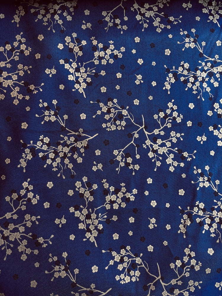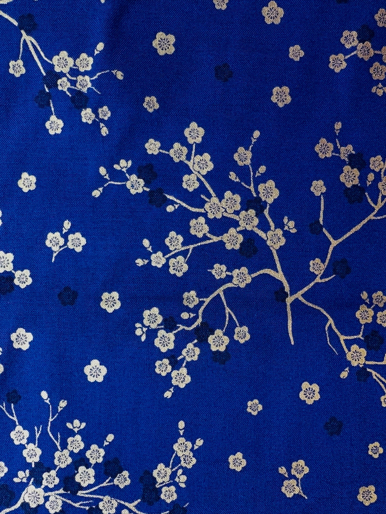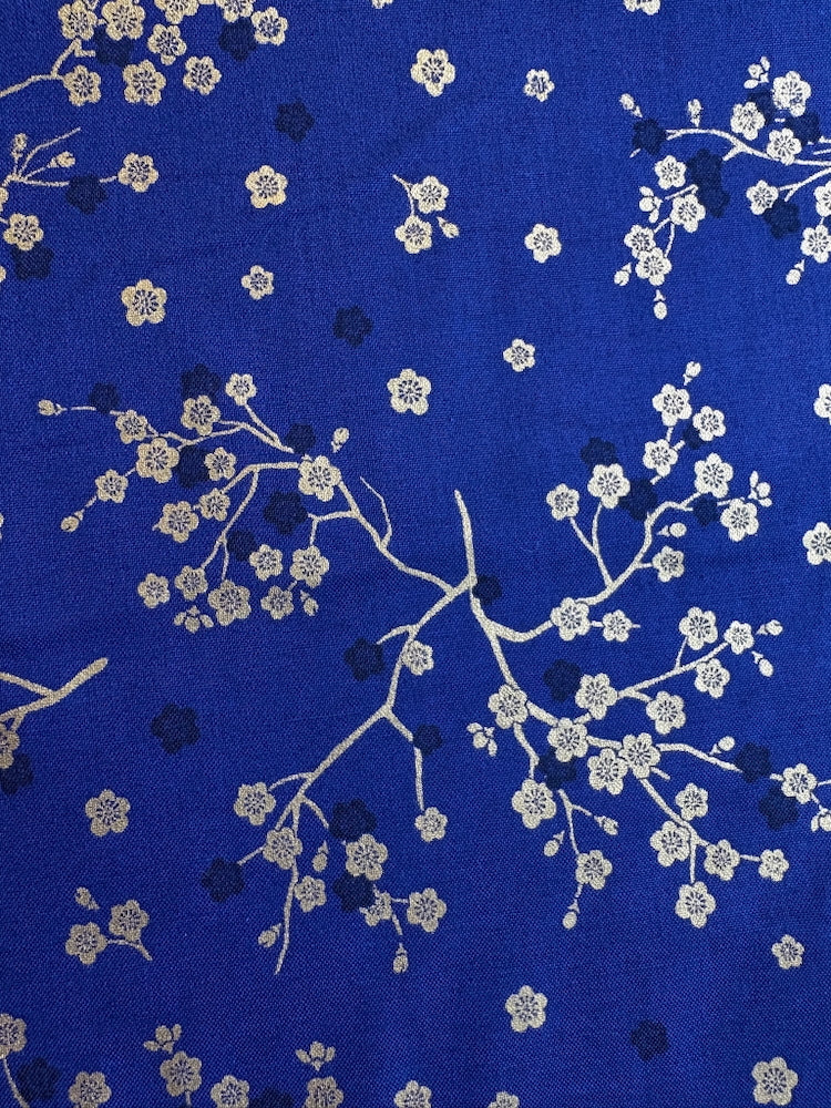 Dieser leichte Baumwollstoff ist typisch japanisch mit goldenen Kirschblütenzweigen bedruckt. Perfekt geeignet für Blusen, Hemden, Kimonos und andere Kleidungsstücke, aber auch für kleine Taschen, Kissen und andere schöne Dinge für zu Hause.